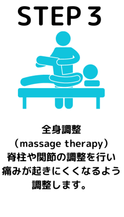 3ステップを受けて頂くことで、根本から疼痛の原因を改善することが可能です。